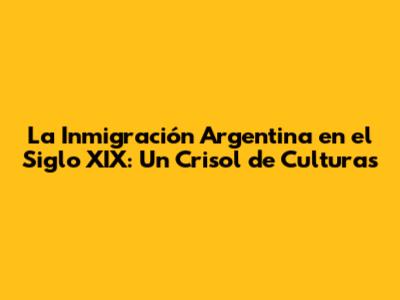 La Inmigración Argentina En El Siglo XIX