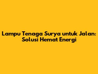 Lampu Tenaga Surya Untuk Jalan: Solusi Hemat Energi
