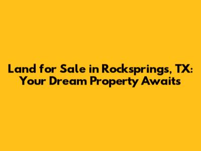Are you looking for land for sale Rocksprings TX? Look no further! Rocksprings, Texas, offers a unique blend of rural charm and natural beauty, making it an ideal location for those seeking a peaceful retreat or a promising investment. Whether you're dreaming of building a custom home, starting a ranch, or simply owning a piece of the Texas Hill Country, Rocksprings has something to offer. In this comprehensive guide, we'll explore everything you need to know about finding the perfect land for sale in Rocksprings, TX, from understanding the local market to navigating the purchasing process. So, buckle up and let's dive into the world of Rocksprings real estate!