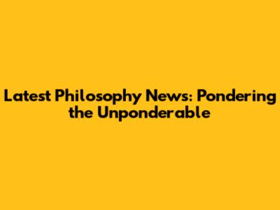 Latest Philosophy News: Pondering The Unponderable