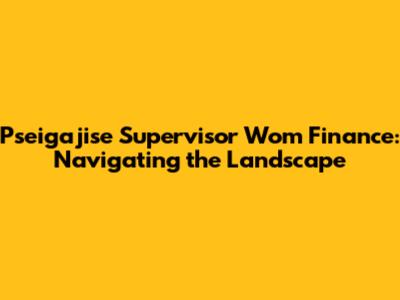 Pseigajise Supervisor Wom Finance: Navigating the Landscape