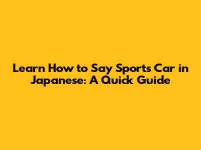 Learn How To Say 'Sports Car' In Japanese: A Quick Guide