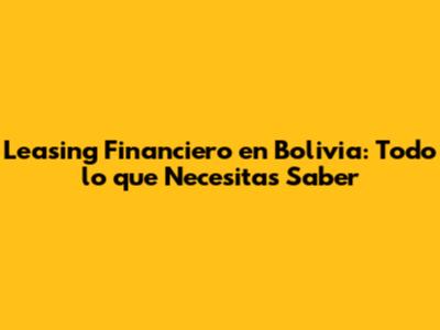Hey, ¿qué onda? Si estás buscando información sobre leasing financiero en Bolivia, has llegado al lugar correcto. En este artículo, te vamos a dar un recorrido completo sobre el tema, desglosando cada detalle para que lo entiendas a la perfección. Además, te proporcionaremos recursos en PDF para que puedas profundizar en el tema y tener toda la información a mano. ¡Prepárense para sumergirse en el mundo del leasing financiero!