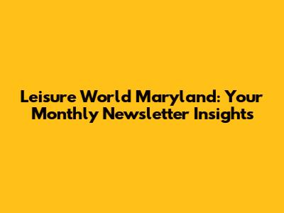 Hey everyone, welcome to the inside scoop on everything happening in Leisure World Maryland! We're diving deep into the world of the Leisure World Maryland newsletter, your go-to source for community updates, event announcements, and all the juicy details that make Leisure World such a vibrant place to live. Think of this as your friendly guide, breaking down the newsletter into bite-sized pieces, so you don't miss a thing. Whether you're a long-time resident or just curious about what Leisure World has to offer, you're in the right place. Let's get started, shall we?