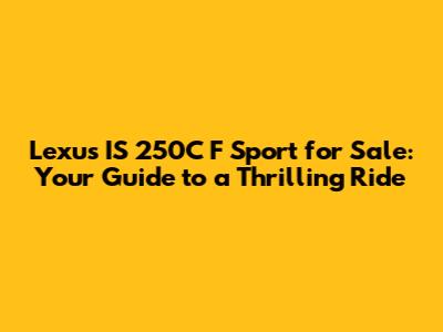 Hey there, car enthusiasts! Are you on the hunt for a stylish, sporty, and head-turning convertible? Look no further! The Lexus IS 250C F Sport might just be the perfect match for you. In this article, we'll dive deep into everything you need to know about finding a Lexus IS 250C F Sport for sale. We'll cover the features that make this car a standout, what to look for when buying, and why it could be the ideal choice for your next ride. So, buckle up, and let's explore the world of the Lexus IS 250C F Sport!