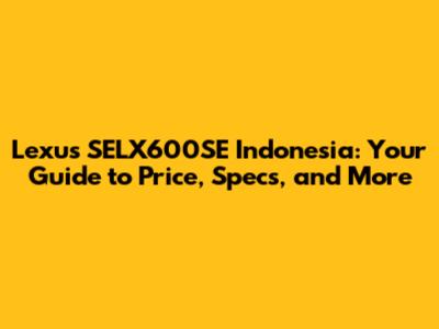 Lexus SELX600SE Indonesia: Price, Specs, And More