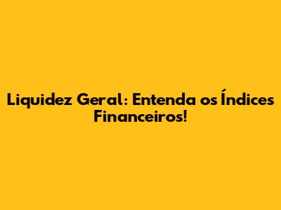 Liquidez Geral: Entenda Os Índices Financeiros!