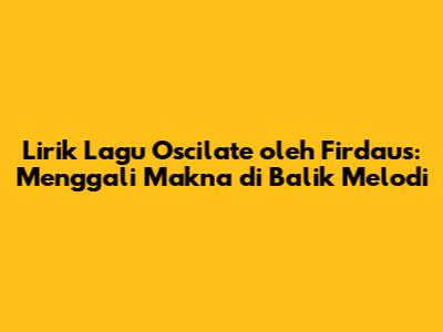 Halo, para pencari makna lagu! Hari ini, kita akan menyelami lebih dalam lirik dari lagu "Oscilate" yang dibawakan oleh Firdaus. Lagu ini, guys, punya potensi besar buat jadi soundtrack di banyak momen hidup kita. Pernah nggak sih kalian dengerin lagu terus ngerasa kayak liriknya tuh nyambung banget sama apa yang lagi kalian rasain? Nah, "Oscilate" ini kayaknya punya kekuatan magis itu. Kita bakal bedah setiap baitnya, coba pahami pesan apa yang mau disampaikan Firdaus, dan gimana melodi serta liriknya ini berpadu harmonis. Siap-siap ya, karena kita nggak cuma bakal baca lirik, tapi juga ngerasain emosi di baliknya. Mari kita mulai petualangan lirik ini!