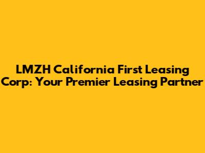 Hey everyone! Are you looking for a smooth ride with LMZH California First Leasing Corp? Navigating the world of leasing can sometimes feel like a maze, but don't worry, we're here to guide you. Let's dive deep into what makes LMZH California a top choice for all your leasing needs, covering everything from the benefits and how it works, to what makes them stand out from the crowd. So, buckle up, and let’s explore the exciting world of LMZH California and how they can help you get behind the wheel of your dream vehicle!