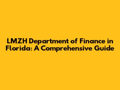 LMZH Department Of Finance In Florida: A Comprehensive Guide