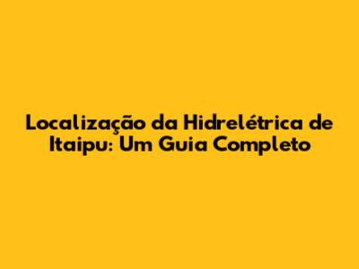 Localização Da Hidrelétrica De Itaipu: Um Guia Completo