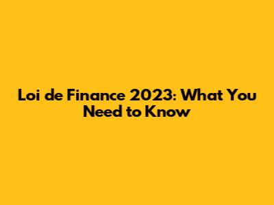 Loi De Finance 2023: What You Need To Know