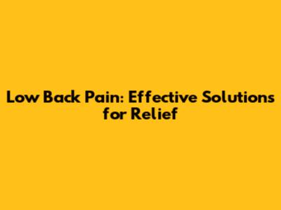 Effective Solutions for Low Back Pain Relief