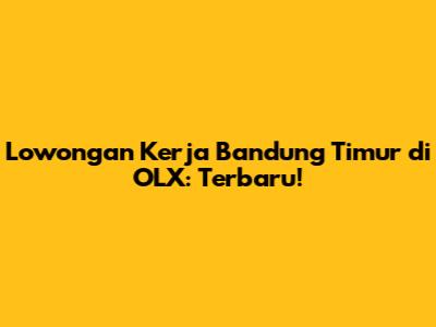 Lowongan Kerja Bandung Timur Di OLX: Terbaru!