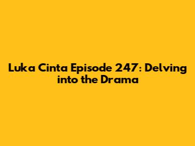 Hey guys, let's dive into the heart-wrenching world of Luka Cinta episode 247! This series has been keeping us on the edge of our seats, right? We're all hooked on the twists, turns, and the oh-so-dramatic situations that unfold with each episode. So, what exactly went down in episode 247? Let's break it down, analyze the key moments, and speculate about what's coming up. This recap is perfect for those who missed the episode or just want to refresh their memory before the next one drops. We'll explore the main plot points, character developments, and any cliffhangers that left us screaming at our screens. Buckle up, because it's going to be a rollercoaster!