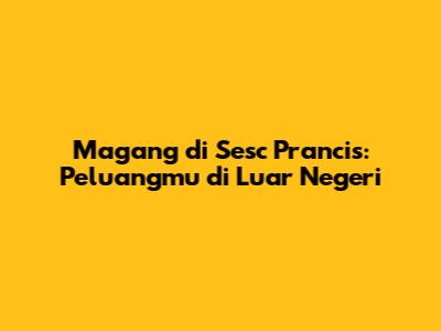 Halo guys! Siapa nih di antara kalian yang lagi bermimpi buat ngerasain magang di luar negeri? Pasti banyak banget ya yang kepengen. Nah, kali ini kita bakal ngobongin soal magang di Sesc Prancis. Kenapa sih Sesc Prancis ini jadi incaran banyak orang? Apa aja sih untungnya? Yuk, kita bedah tuntas biar kalian punya gambaran yang jelas!