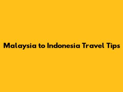 Malaysia To Indonesia Travel Tips