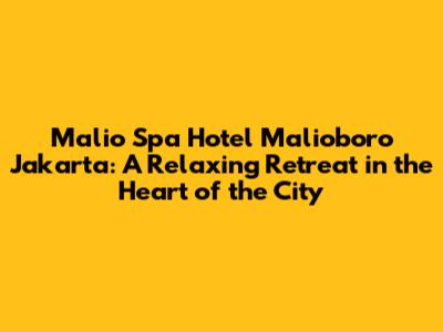 Are you looking for a serene escape amidst the bustling energy of Jakarta? Look no further than the Malio Spa Hotel Malioboro Jakarta. This hotel offers a harmonious blend of comfort, convenience, and rejuvenating spa experiences, making it an ideal choice for both leisure and business travelers. Let’s dive deep into what makes this hotel a standout option in the vibrant Malioboro district.