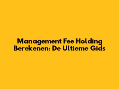 Management Fee Holding Berekenen: De Ultieme Gids