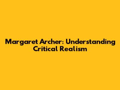 Margaret Archer: Understanding Critical Realism