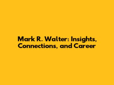 Mark R. Walter: Insights, Connections, And Career