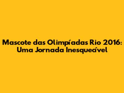 Mascote Das Olimpíadas Rio 2016: Uma Jornada Inesquecível