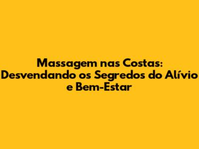 Massagem Nas Costas: Alívio E Bem-Estar Para Suas Dores