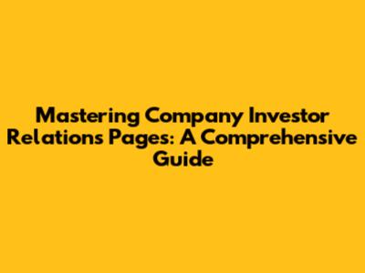 Mastering Company Investor Relations Pages: A Comprehensive Guide