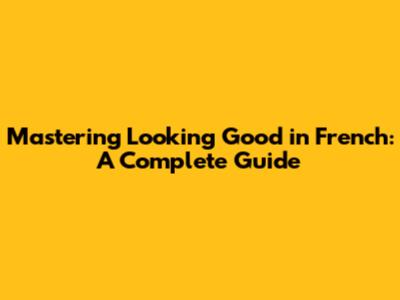 Mastering 'Looking Good' In French: A Complete Guide