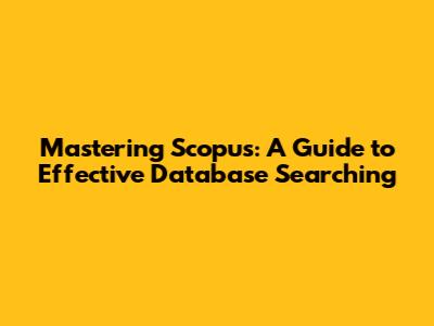 Mastering Scopus: A Guide To Effective Database Searching