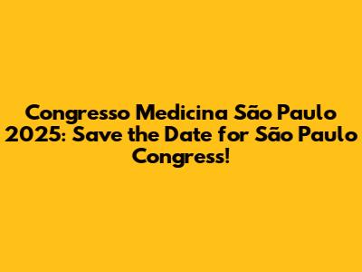 Medicina SP 2025: Save The Date For São Paulo Congress!
