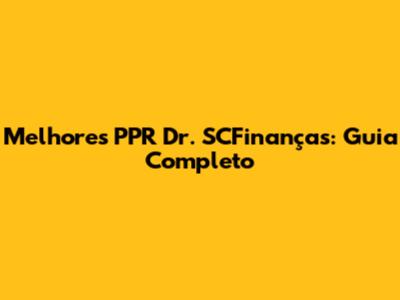 Melhores PPR Dr. SCFinanças: Guia Completo