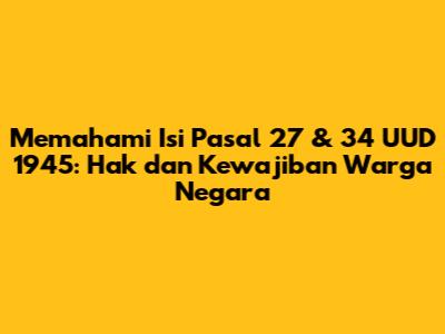 Hai guys, mari kita bedah dua pasal penting dalam Undang-Undang Dasar Negara Republik Indonesia Tahun 1945 (UUD 1945), yaitu Pasal 27 dan Pasal 34. Kedua pasal ini sangat krusial karena menyentuh langsung hak dan kewajiban kita sebagai warga negara. Gak usah khawatir, kita akan bahas dengan bahasa yang santai dan mudah dipahami, kok. Jadi, siap-siap untuk menggali lebih dalam tentang hak-hak kita, kewajiban kita, dan bagaimana negara seharusnya hadir untuk kita semua.
