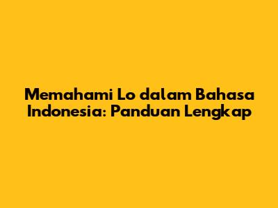 Memahami Lo Dalam Bahasa Indonesia: Panduan Lengkap