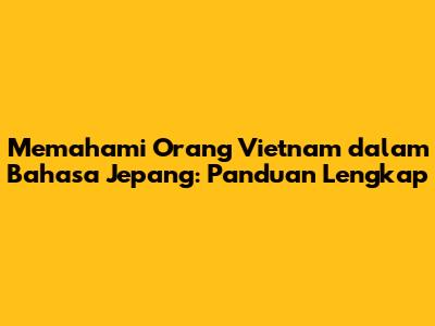 Memahami Orang Vietnam Dalam Bahasa Jepang: Panduan Lengkap