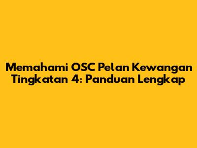Memahami OSC Pelan Kewangan Tingkatan 4: Panduan Lengkap