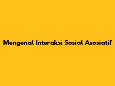 Apa Itu Interaksi Sosial Asosiatif?