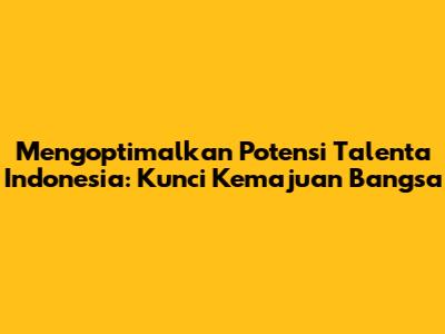 Optimasi talenta Indonesia bukan sekadar slogan, melainkan kebutuhan mendesak. Di tengah persaingan global yang semakin ketat, negara-negara yang mampu unggul adalah mereka yang mampu mengelola dan mengembangkan potensi SDM-nya secara optimal. Talenta-talenta terbaik Indonesia, dengan berbagai keahlian dan pengalaman, adalah aset berharga yang harus terus diasah dan dikembangkan. Ketika talenta-talenta ini diberikan kesempatan yang tepat untuk berkembang, mereka akan mampu menciptakan inovasi-inovasi yang luar biasa, mendorong pertumbuhan ekonomi, dan meningkatkan kualitas hidup masyarakat. Bayangkan saja, jika para talenta Indonesia yang berbakat di bidang teknologi, seni, olahraga, dan berbagai bidang lainnya, diberikan dukungan penuh, mereka akan mampu mengharumkan nama bangsa di kancah internasional, menciptakan lapangan kerja, dan mendorong pertumbuhan ekonomi yang berkelanjutan. Selain itu, optimasi talenta Indonesia juga akan berdampak positif pada berbagai aspek kehidupan, seperti peningkatan kualitas pendidikan, kesehatan, dan infrastruktur. Dengan memiliki SDM yang berkualitas, Indonesia akan lebih mampu menghadapi tantangan global, seperti perubahan iklim, krisis ekonomi, dan persaingan teknologi. Oleh karena itu, investasi pada pengembangan talenta Indonesia adalah investasi jangka panjang yang akan memberikan dampak positif bagi bangsa di masa depan.