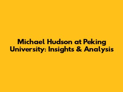 Michael Hudson At Peking University: Insights & Analysis