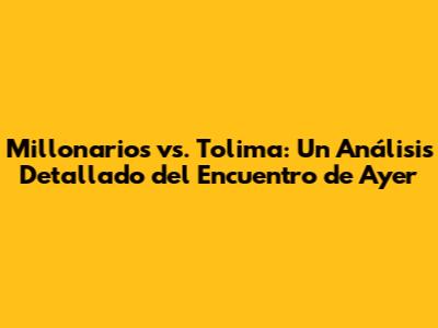 Millonarios Vs. Tolima: Resultados Y Análisis Del Partido