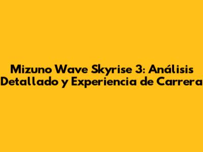 Mizuno Wave Skyrise 3: Review, Características Y Rendimiento