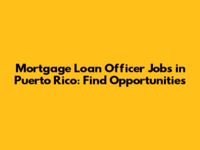 Mortgage Loan Officer Jobs In Puerto Rico: Find Opportunities