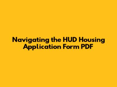 Navigating The HUD Housing Application Form PDF