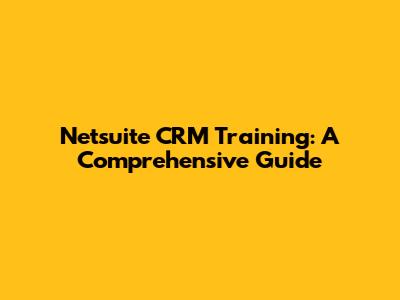 Netsuite CRM Training: A Comprehensive Guide