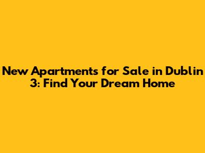 New Apartments For Sale In Dublin 3: Find Your Dream Home
