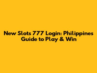 New Slots 777 Login: Philippines' Guide To Play & Win