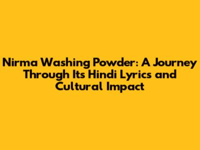 Nirma Washing Powder: A Look At The Hindi Lyrics And Legacy