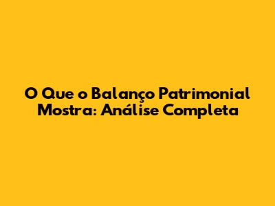 O Que O Balanço Patrimonial Mostra: Análise Completa