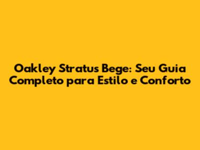 Oakley Stratus Bege: Guia Completo E Dicas De Uso