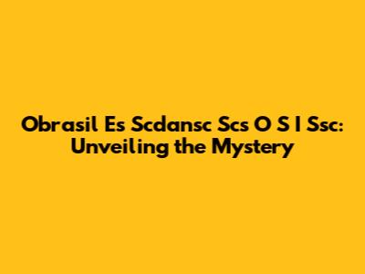 Decoding the Enigma: Obrasil Es Scdansc Scs O S I Ssc